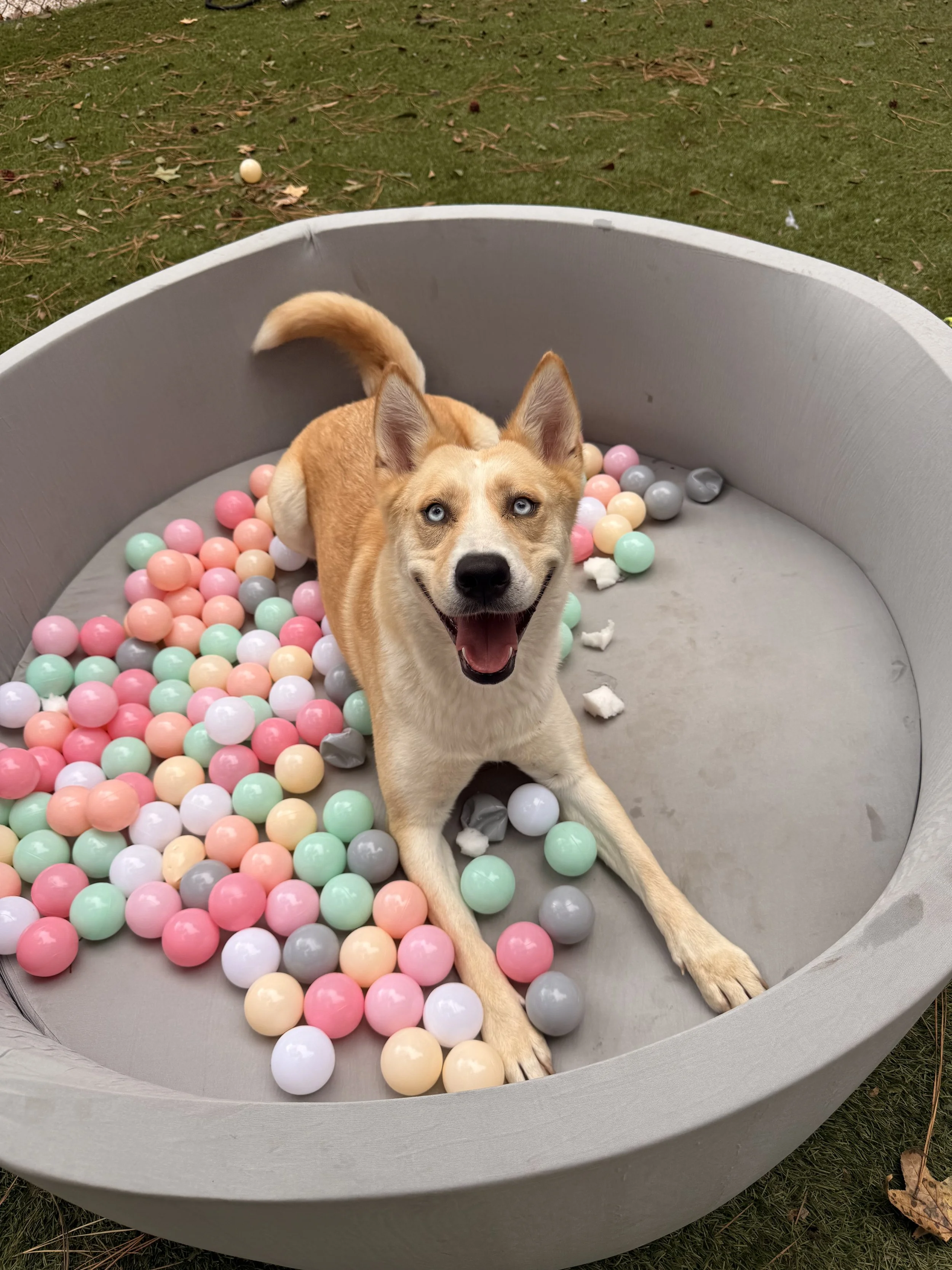Maggie – A spunky, smart girl who wants to be the center of attention! She is a gorgeous girl with striking blue eyes and a big personality. She loves life and wants to be right in the middle of the action—whether that’s romping around with dog friends, snuggling up with you, or eagerly waiting for her next treat.